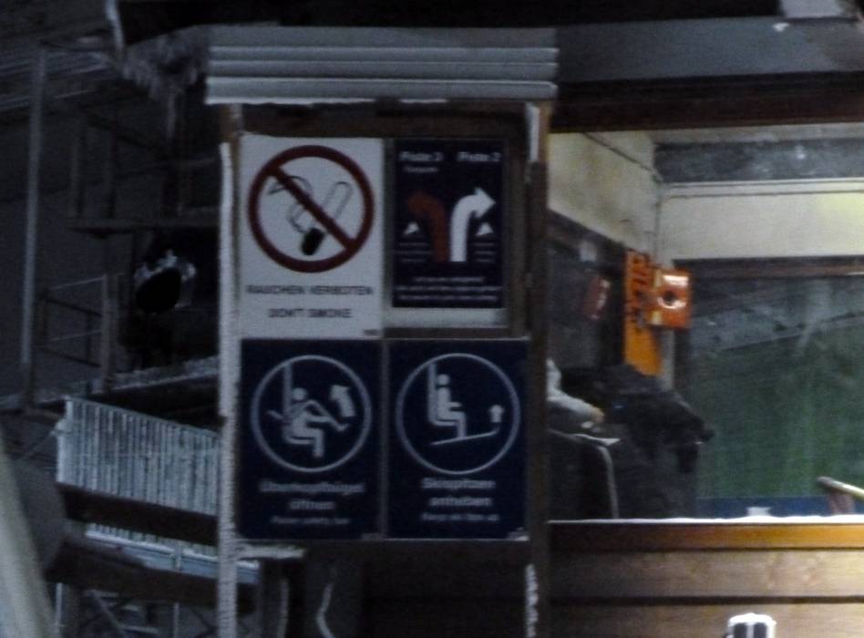 Auf den Pisten gibt es kaum eine Ausschilderung. Man findet Informationstafeln und eine Ausschilderung zum Funpark. Zusätzlich wird die aktuelle Temperatur in der Skihalle angezeigt.