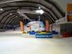 Auf der rechten Seite der Skihalle gibt es ein eigenes Förderband für Familien mit Kindern. Man kann hier auch wunderbar seinen Geburtstag im Kiddies Kids Klup feiern. Direkt an der Skihalle gibt es auch einen Glowgolf (Minigolf) und Ice Carts.