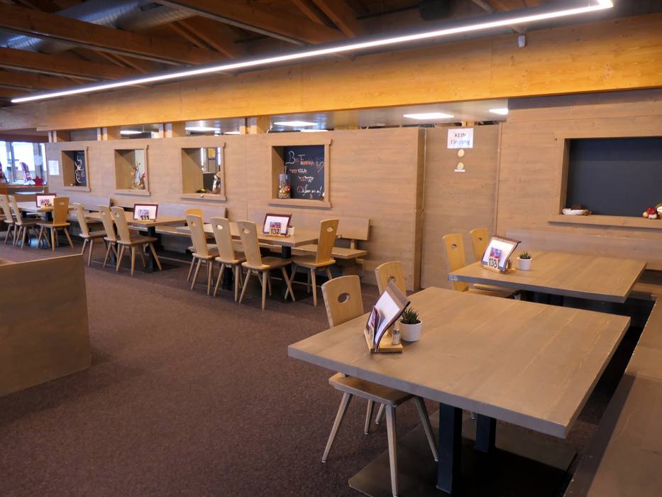 Das große und schöne Selbstbedienungsrestaurant bietet eine gute Auswahl an beliebten Mittagsgerichten. Ein reichhaltiges Salatbuffet sowie köstliche Strudel und Kuchenvariationen erweitern das Angebot. Die große Sonnenterrasse lädt zum Verweilen ein. Die Eis-Bar sorgt für gute Stimmung. Das Bergfrühstück mit Anmeldung ist ein kulinarisches Highlight.