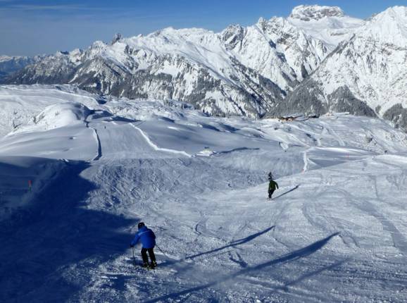 Blick auf die Pisten am Riedkopf und Sattelkopf