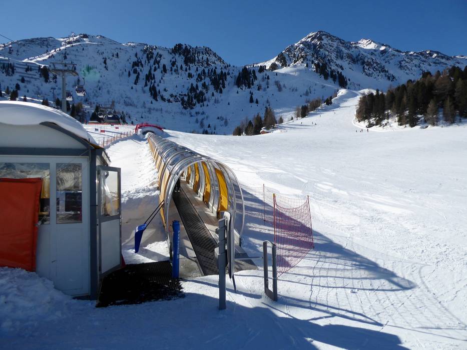 An der Bergstation der Gondelbahn Speikboden befindet sich das überdachte Förderband Tottomandl mit breiten und leichten Pisten. Bei der Auffahrt mit dem Förderband findet man Tiermotive im Tunnel.
