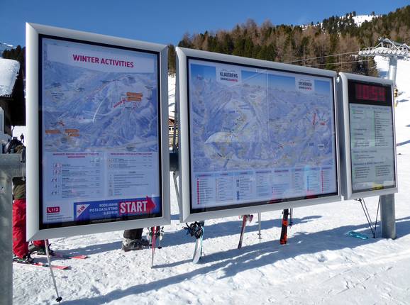 Die Ausschilderung auf den Pisten ist sehr gut. An den Abzweigungen sind Schilder angebracht und digitale Informationen findet man an mehreren Lifteinstiegen. An der Talstation und an der Bergstation Speikboden findet man digitale Informationen zum aktuellen Betriebsstatus. In der Gondelbahn Speikboden gibt es sogar Pistenpläne zum Mitnehmen.