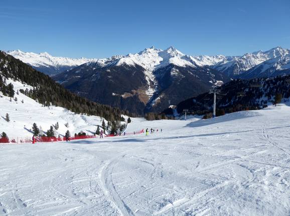 Eine gut beschneite Talabfahrt führt hinunter zur Gondelbahn Speikboden. Weitere Talabfahrten führen nach Luttach und Weissenbach. Von hier geht es mit dem Skibus zurück zur Gondelbahn Speikboden.
