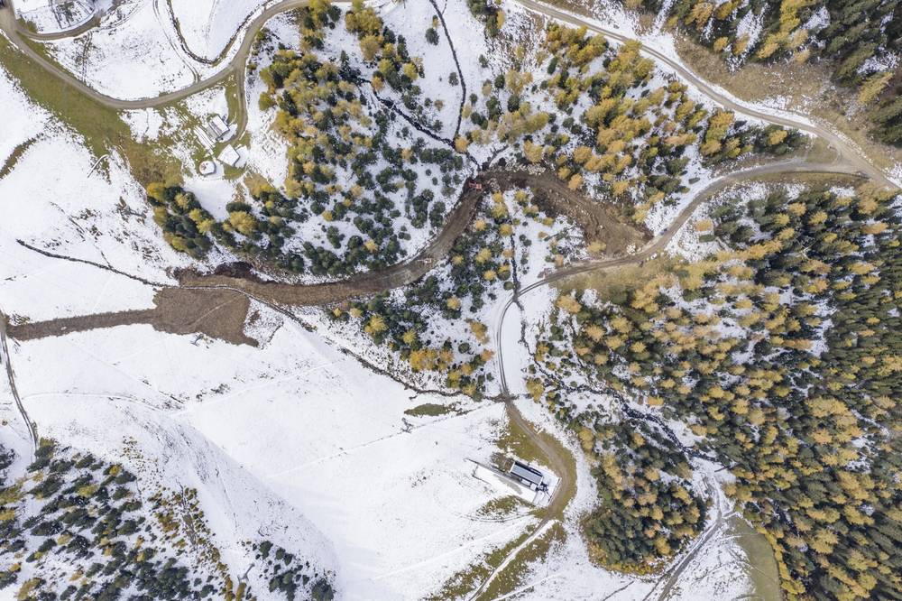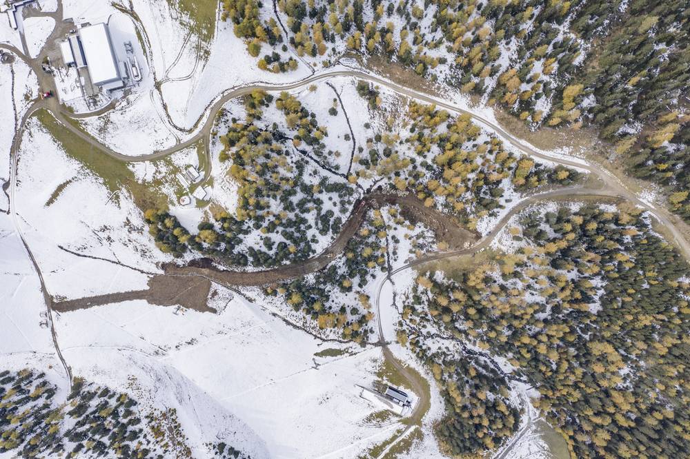 Eine sonnige Variante der Talabfahrt mit Überführung der Straße. Die Einkehr zum Schüsslerhof wird komfortabler, auf der gesamten Talabfahrt muss keine Straße mehr gequert werden.2012/2013