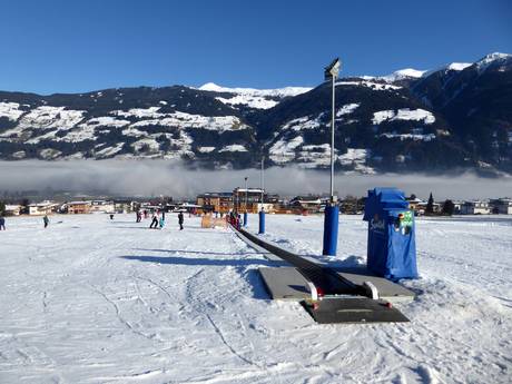 Leicht unterhalb der Talstation der Spieljochbahn im Ort Fügen liegt dieses große Übungsareal. Kinder lernen das Skifahren am Förderband. Mehrere Skischulen üben mit den Kleinen im Kinderpark. Eine Wellenbahn rundet das Angebot ab.
