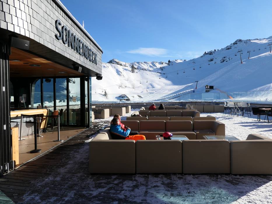 Das Sonnendeck befindet sich auf der großen Sonnenterrasse mit herrlichem Blick auf die Pisten. Im Sonnendeck kann man einen gepflegten Drink nehmen und erhält Snacks. Zudem wird hier auch frische Pizza aus der Pizzeria serviert. Die gemütlichen Lounge-Chairs laden zum Verweilen ein.