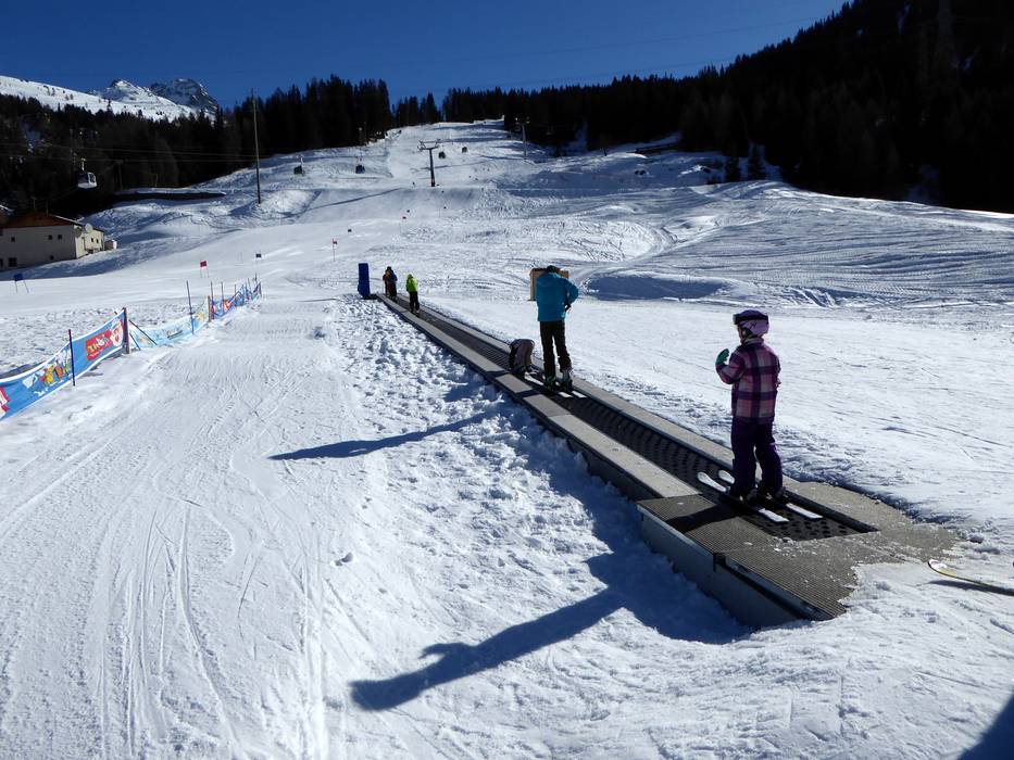 Das Kinderland an der Talstation wird von der Schweizer Ski- und Snowboardschule Splügen betreut und bietet einen Zauberteppich.