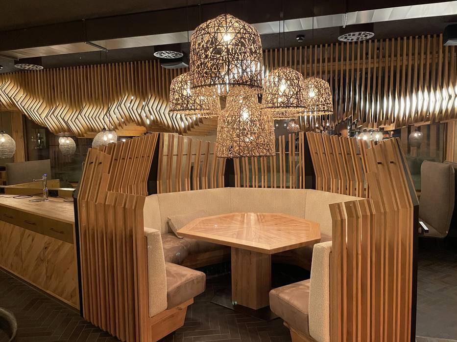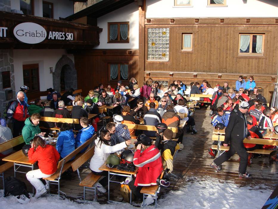 Gute Stimmung und gutes Essen sind hier geboten. Es gibt täglich Live-Musik zum Après-Ski.