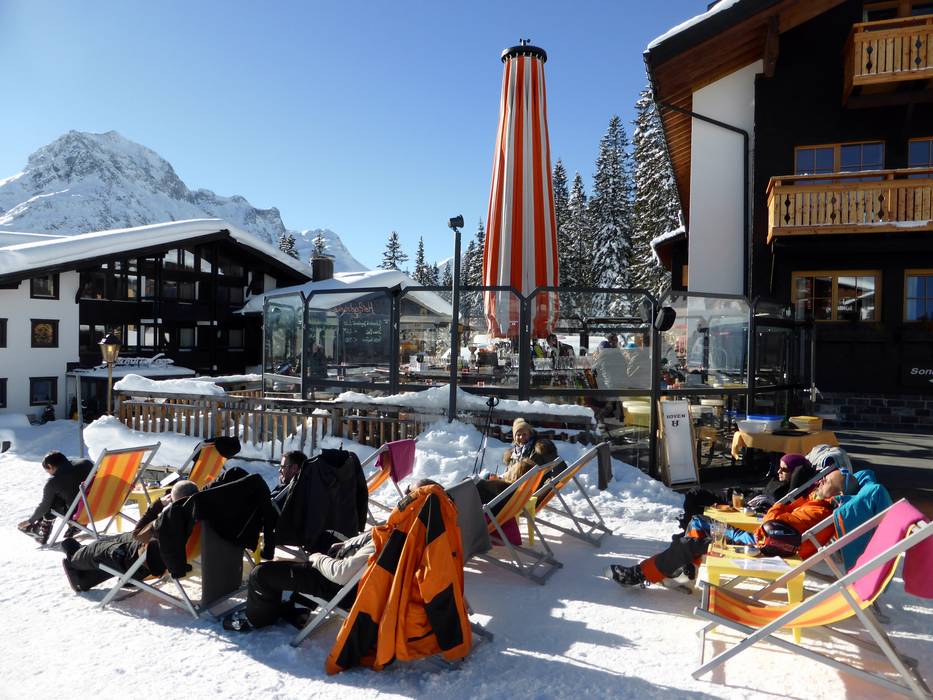 In Warth kehrt man in der Schirmbar des Hotels Steffisalp ein. Nach dem Skifahren geht es hier lustig her und es kann auch schon mal länger werden.