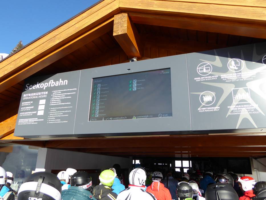 Die Übersichtstafeln und Ausschilderungen sind vorbildlich im gesamten Skigebiet verteilt. An den wichtigen Punkten findet man umfassende Pistenpläne mit aktuellen Informationen zum Betriebsstatus. Beim Einstieg sind an den meisten Bahnen aktuelle Informationen angegeben.