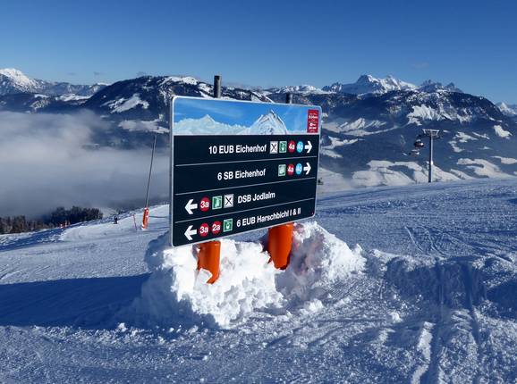 Orientierung (Pistenplan, Informationstafeln, Ausschilderung) und Sicherheit im Skigebiet St. Johann in Tirol/Oberndorf – Harschbichl