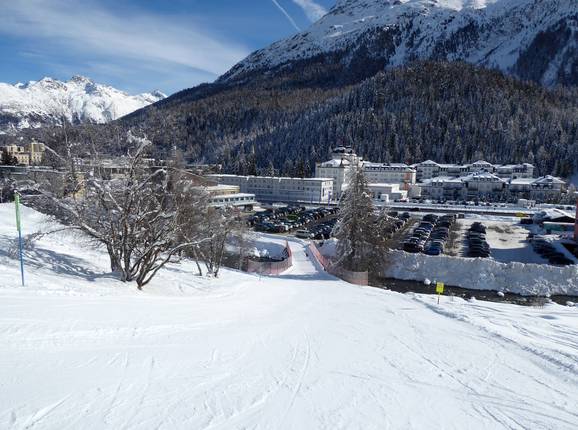 Die Anfahrt nach St. Moritz ist über diverse Bergpässe oder durch den Vereinatunnel (mit Autoverladung) möglich. Von Zürich aus ist St. Moritz in 2,5 Std. erreichbar, von München aus in 4 Std., von Mailand in knapp 3 Std. und von Innsbruck in 2,5 Std. Die nächsten Autobahnen sind relativ weit entfernt vom Skigebiet. In Celerina und St. Moritz Bad kann man direkt an den Seilbahnen parken. In St. Moritz selber gibt es zwei Parkhäuser. Vom Parkhaus Serletta (am Bahnhof) läuft man bis zur Chantarellabahn durch den Ort. Das Parkhaus Quadrellas mit 200 Plätzen liegt nur etwa 80 m von der Chantarellabahn entfernt. In Suvretta ist ein weitere Einstieg vorhanden. Die Parkplätze sind in der Regel kostenpflichtig. Wenn die Schneesituation auf den Straßen schwieriger werden sollte, besteht ab Klosters/Selfranga im Prättigau die Möglichkeit, das Engadin über den Autoverlad Vereina zu erreichen. Wer es sich leisten kann, kommt in die Region Engadin St. Moritz per Privatjet und steuert den nahen Privatflughafen Samedan an.