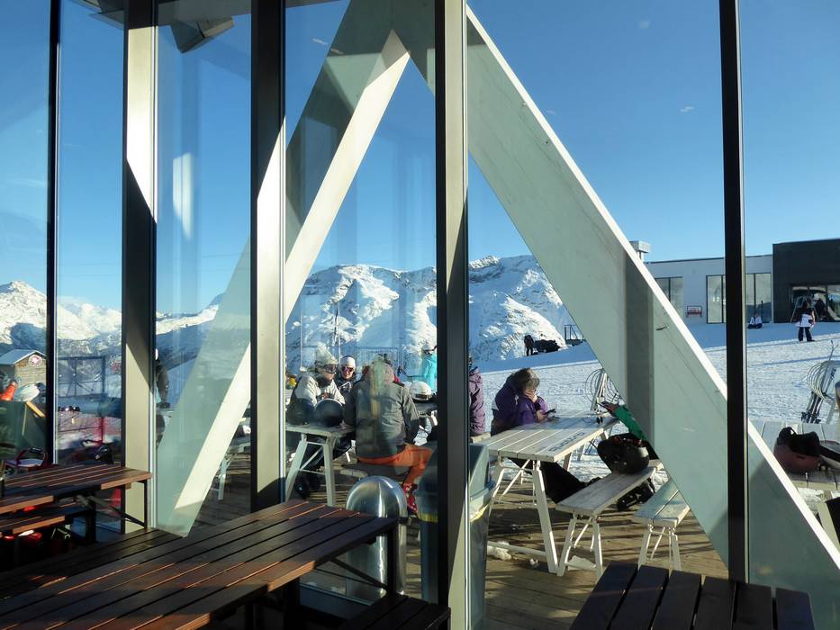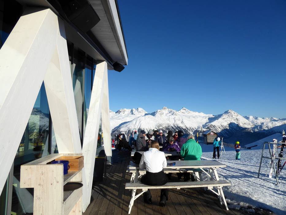 An der Schneebar der Alpina Hütte oder im Sonnenstuhl kann man den Skitag wunderbar ausklingen lassen und den herrlichen Ausblick auf das Engadin genießen. Man muss aber immer noch um 16 Uhr ins Tal abfahren.