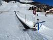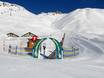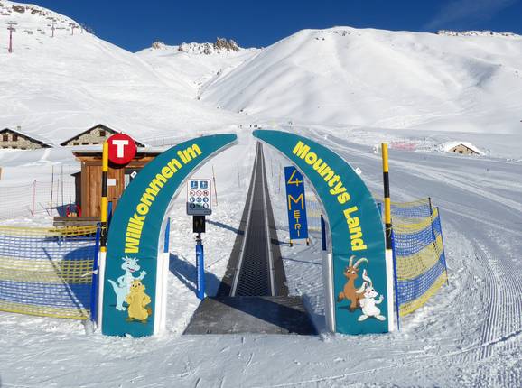 Die geschützte Kids-Zone mit eigenem Förderband befindet sich an der Station Marguns. Hier können die Kleinen in aller Ruhe die lustigen Figuren der Mountys genießen und auf spielerische Art und Weise an den Wintersport herangeführt werden.