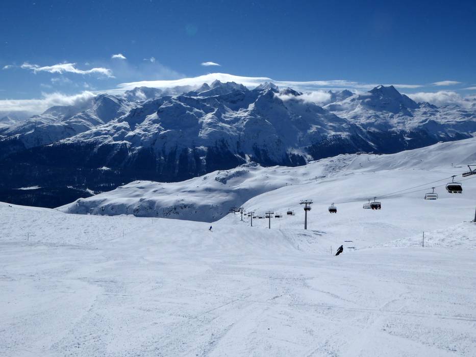 Pistenangebot, Variationen bei den Abfahrten im Skigebiet St. Moritz – Corviglia