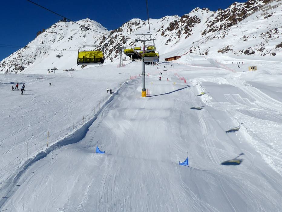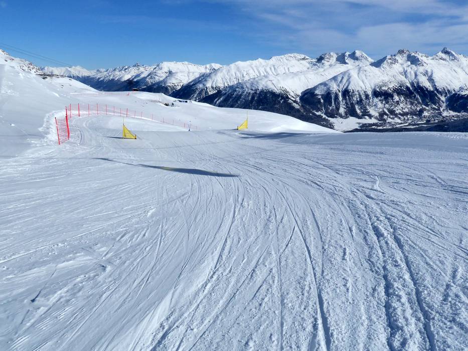 Die rund 600 m lange Ski-Cross Strecke an der Sesselbahn Salastrains bietet Wellen, Mulden und rasante Kurven.