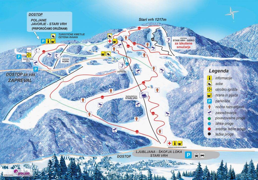 Zapreval (0 km), Četena Ravan (0,8 km), Sv. Lenart (2,4 km) Orte am Skigebiet