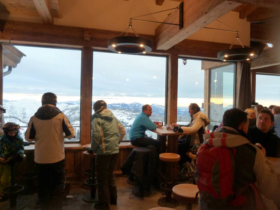 Die neue Après-Ski-Hütte auf der Steinplatte bietet Platz für 300 Personen. Hier kann man den Skitag an der Bar, in der Lounge oder am offenen Kamin ausklingen lassen. Die Tenne ist bis zur letzten Gondelfahrt geöffnet.