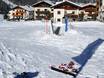 Die Skischule Sulden bietet Skikurse und anschließende Betreuung für Kinder ab 3 Jahren an. Im eigenen Übungsland an der Talstation der Seilbahn können Kinder die ersten Schritte im Schnee machen. Dort gibt es Förderbänder und einen kleinen Bereich mit Figuren und Toren. Direkt nebenan am selben Hang ist das überdachte Cevedale Förderband für alle, die sich schon ein bisschen mehr zutrauen.