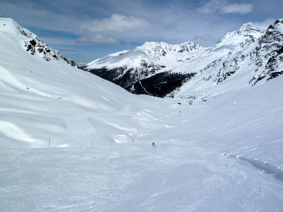 Die Rosimpiste ist mittelschwer bis schwer und führt entlang der Rosimbahn durch eine Waldschneise zu Tale. - Schöntaufspitze