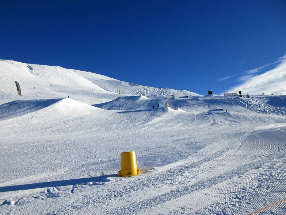 Der Grizzly XL Terrain Park ist der Snowpark für Könner. Große Jumps, Rails und Boxen fordern hier auch die Fortgeschrittenen Freestyler. Mit der Vierersesselbahn Great Divide Express ist der Park bequem zu erreichen.