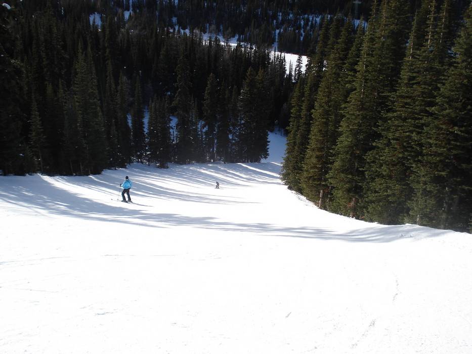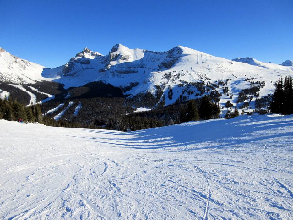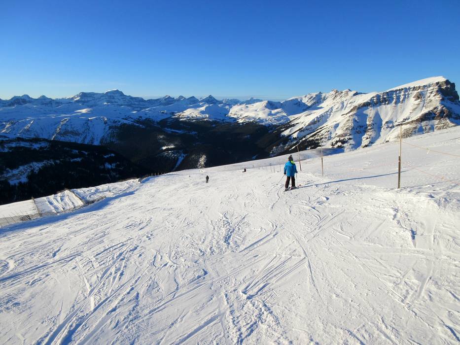 Die längste Abfahrt führt vom Lookout Mountain über die leichte Piste Nr. 34 Green Run bis zum Sunshine Village und dann weiter über die leichte Piste Nr. 1 Banff Avenue bis zur Talstation. Man kann mit der Vierersesselbahn Jackrabbit ein kurzes Stück nach oben schweben und entgeht so einem langen Ziehweg.