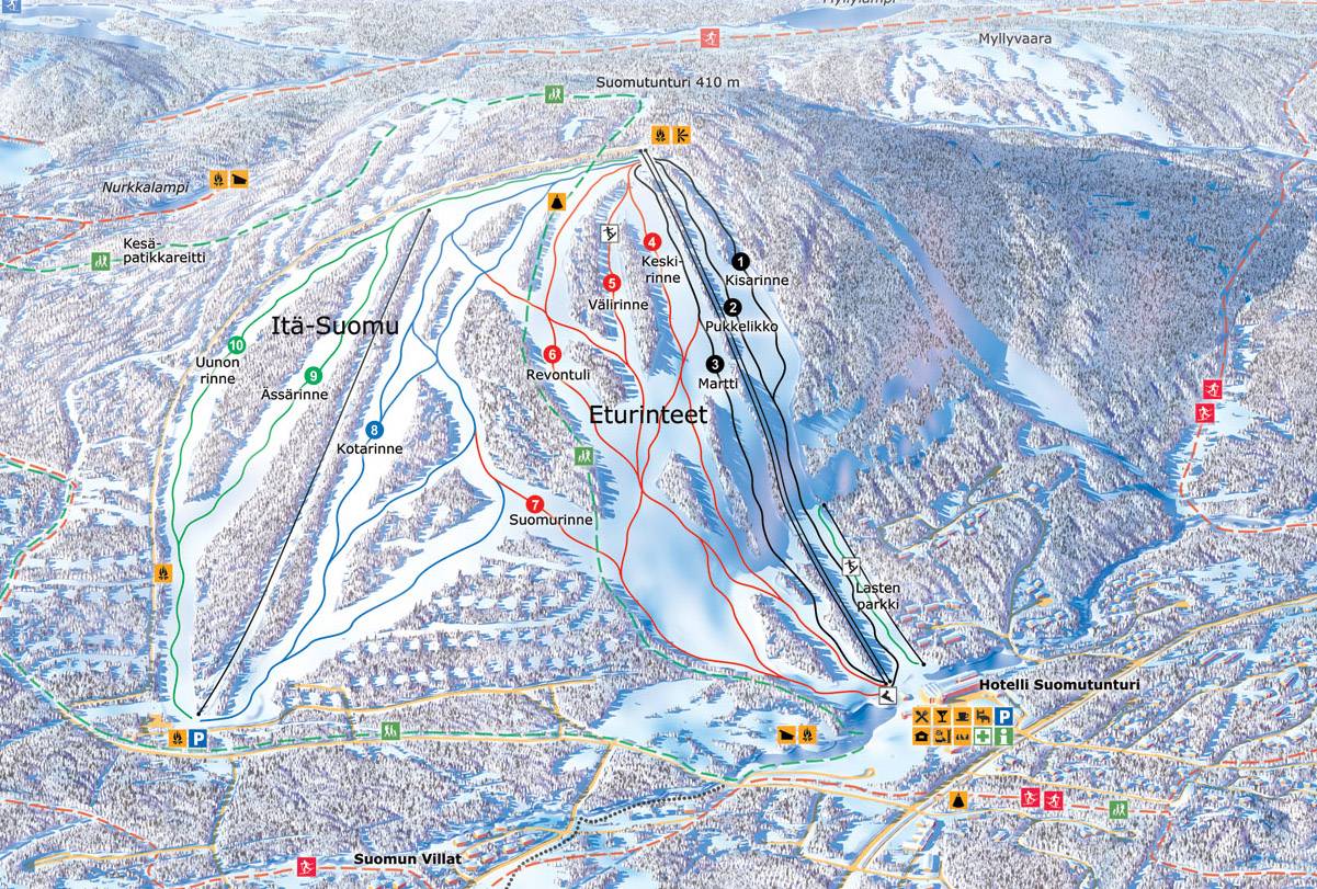 Suomutunturi (0 km), Kemijärvi (43 km) Orte am Skigebiet