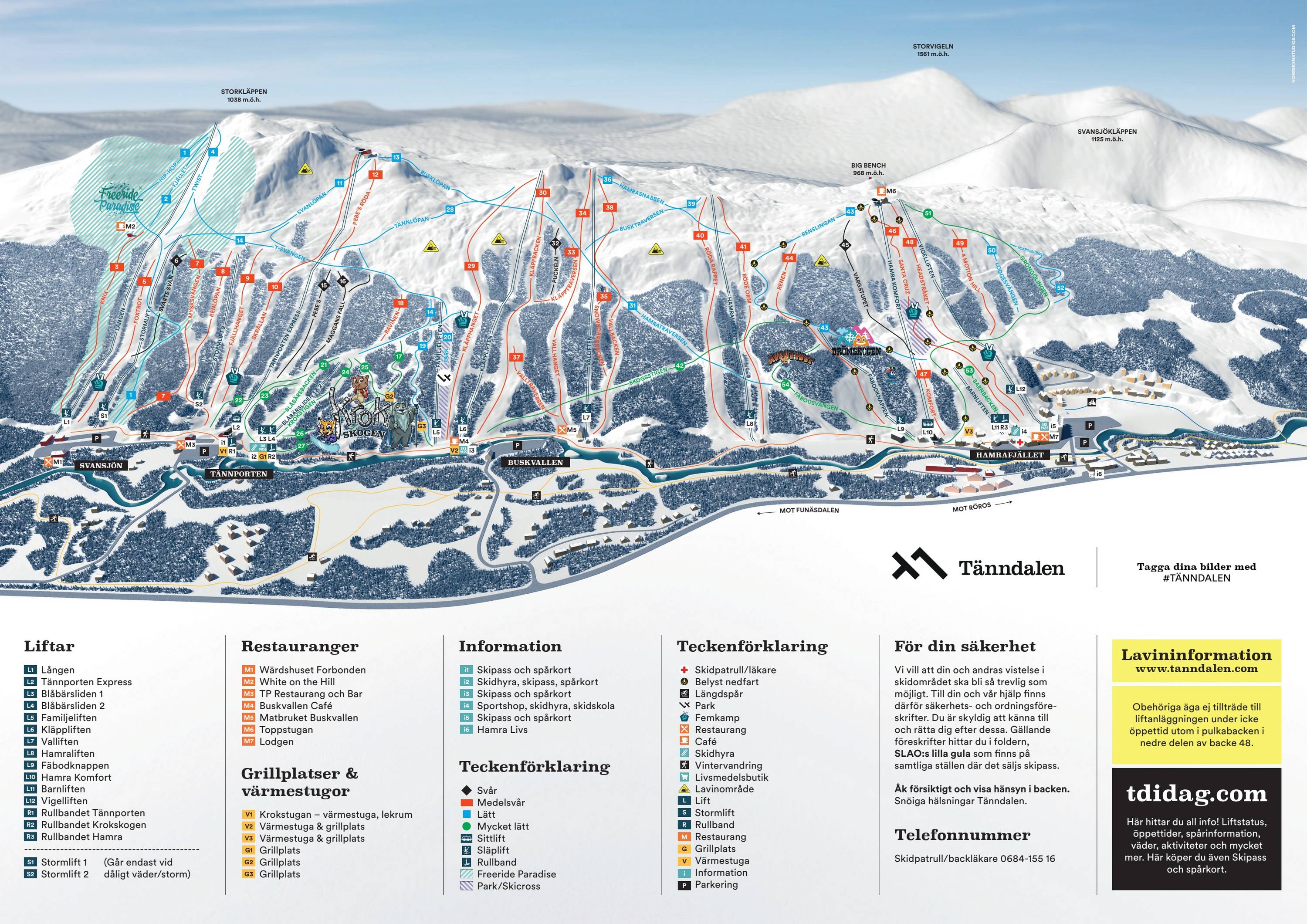 Svansjön (0 km), Tännporten (0,1 km), Hamrafjället (0,2 km), Buskvallen