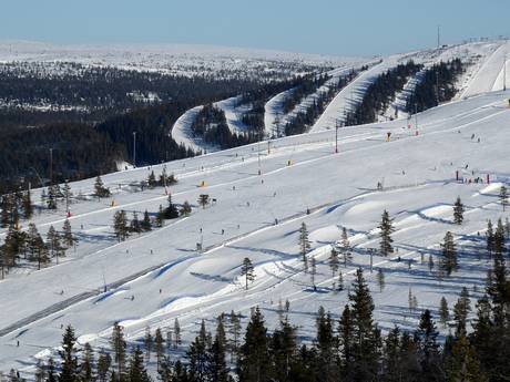 Direkt an der Talstation in Tandådalen gibt es einen großen abgetrennten Bereich für Familien mit Kindern. Förderbänder und Tellerlifte erschließen den leichten und breiten Hang. Lustige Figuren runden das Angebot ab.