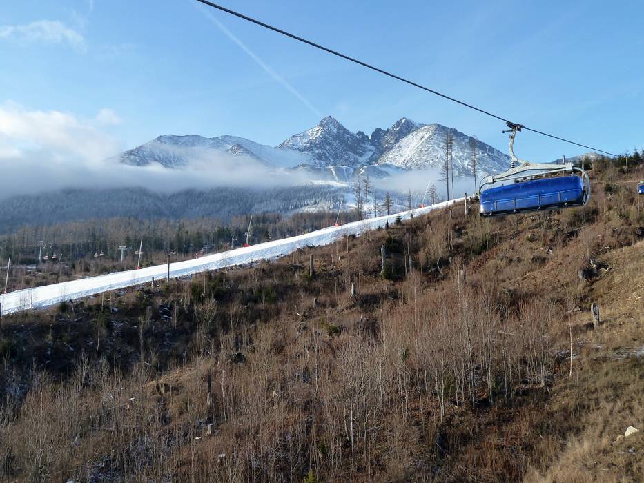 Von Skalnaté Pleso bis ins Tal sind alle Pisten beschneit. Nur der oberste Teil ist nicht beschneit. Normalerweise ist Schneemangel in der Hohen Tatra ein Fremdwort.