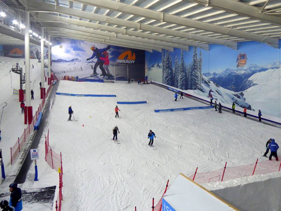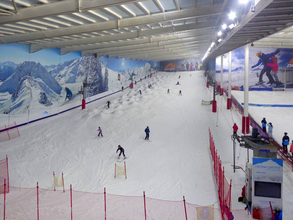Blick vom Balkon in die Skihalle The Snow Centre 1/36