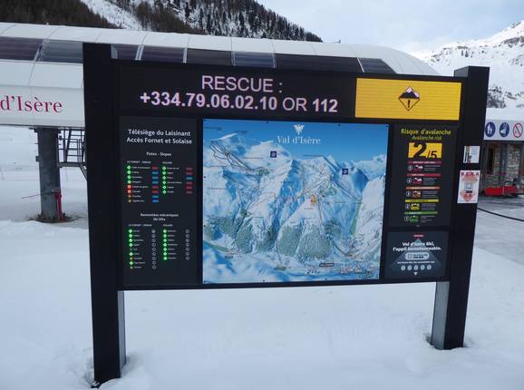 Orientierung (Pistenplan, Informationstafeln, Ausschilderung) und Sicherheit im Skigebiet Tignes/Val d'Isère