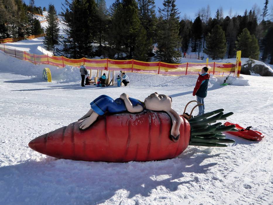 Auf der Kidsslope am Wildkopflift haben Kinder viel Spaß. Mit tierischen Begleitern geht es durch einen Schneetunnel, Steilkurven und Wellen.
