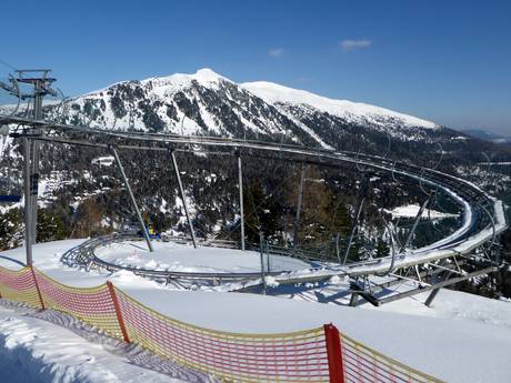 Die Funslope auf der Turracher Höhe bringt mit Wellen, Steilkurven, Tunnels, einer Doppelschnecke und kleinen Sprüngen viel Spaß für die ganze Familie. Sie liegt an der Kornockbahn.