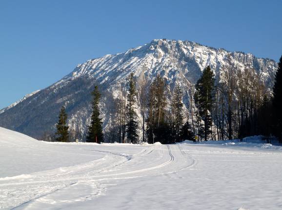 Die Brandner Loipe führt von Ruhpolding über Maiergschwendt, Winkl, Unternberg wieder nach Ruhpolding.
