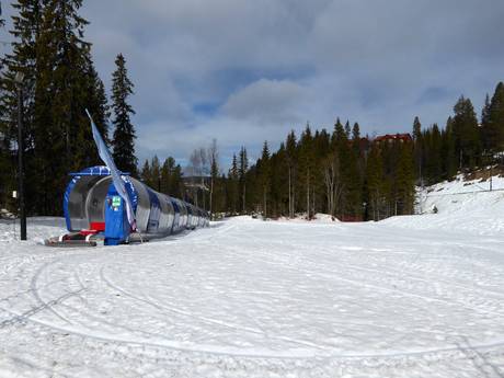 Direkt an der Talstation Skalspasset befindet sich ein überdachtes Förderband mit leichter Piste. Es liegt etwas abseits der Pisten und somit können sich die Kleinen hier in sicherer Umgebung austoben.