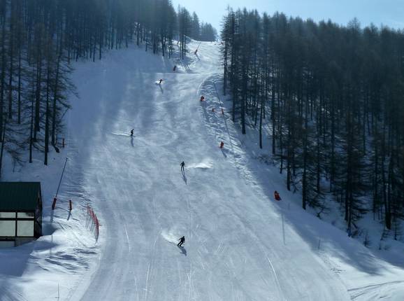 Die Abfahrt führt von der Berg- zur Talstation des Schlepplifts La Motta.