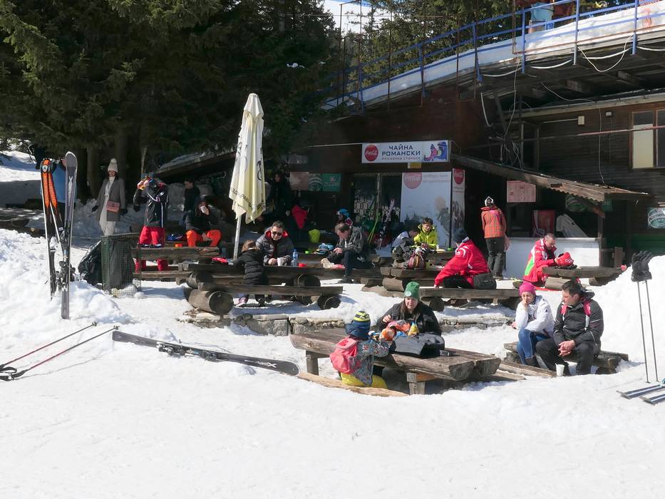 An der Talstation der Sesselbahn B. Laleto 1 befindet sich eine große Schirmbar am Parkplatz. In den Skihütten rund um Aleko kann man den Skitag auch schön ausklingen lassen.