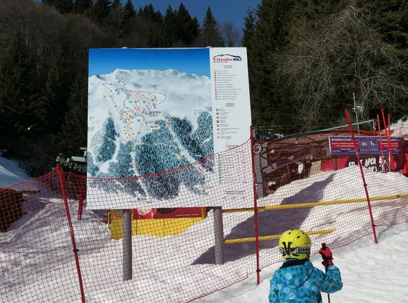Informationstafeln sind an wichtigen Stellen im Skigebiet verteilt. Stillgelegte Anlagen sind jedoch weiterhin enthalten. Es gibt einige Ausschilderungen und Pistenmarkierungen. Anfängerbereiche werden sehr gut abgesichert.