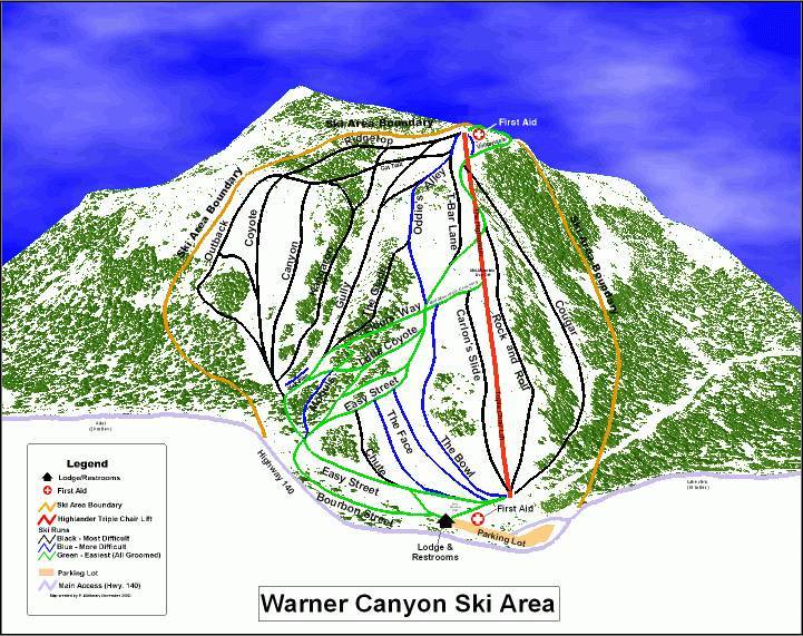 Pistenplan vom Skigebiet Warner Canyon – Lakeview