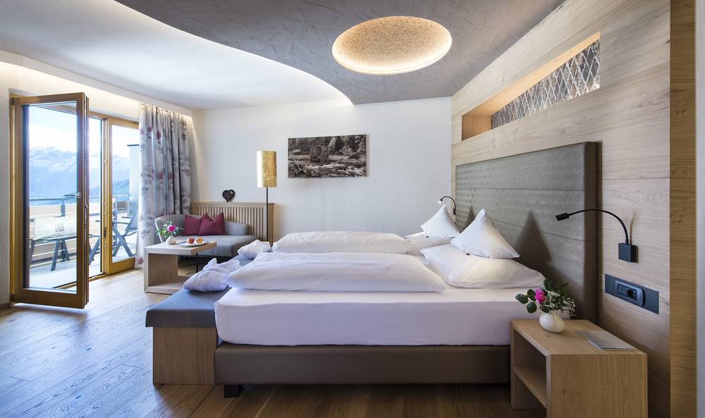 Die im alpinen Stil eingerichteten Zimmer und Suiten bieten einen unvergesslichen Blick auf den Cevedale und über den Vinschgau. Die Suiten lassen keine Wünsche offen. Hier fühlt man sich von der ersten Minute an sehr wohl.
