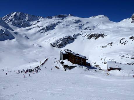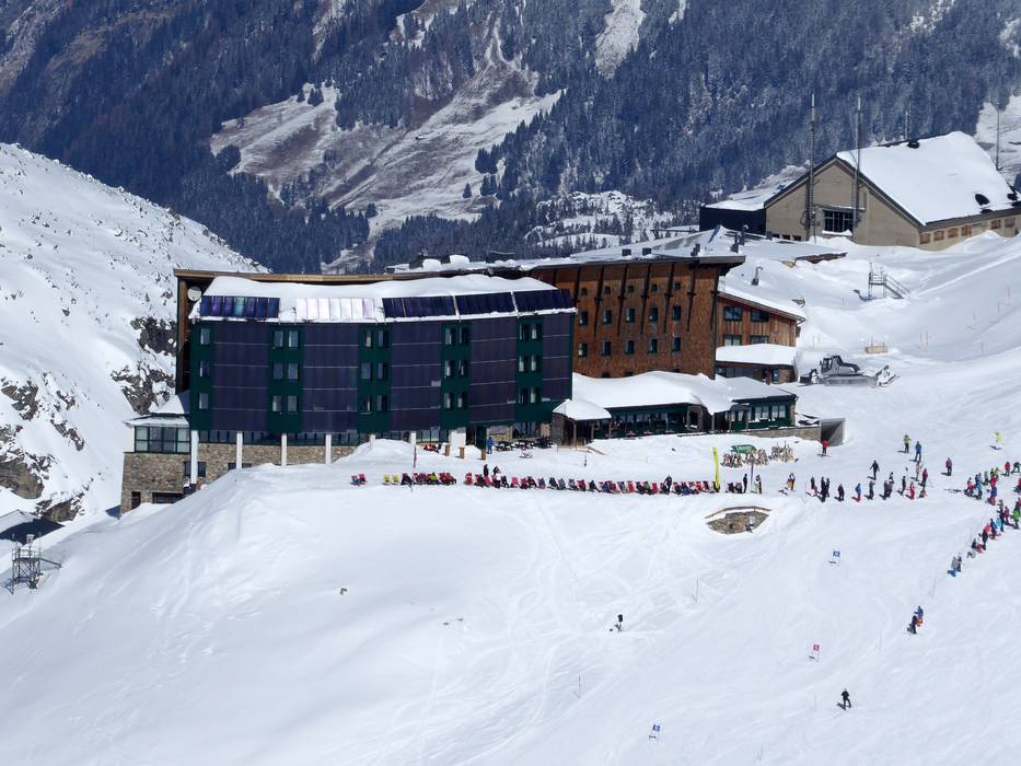 Das Berghotel Rudolfshütte befindet sich mitten im Skigebiet Weißsee Gletscherwelt und bietet perfektes Ski-in/Ski-out. Zum Berghotel zählen auch das Sonnblick-Haus und die Steinbockhütte. Gesamt gibt es hier rund 400 Betten zum Übernachten. Für die Gäste stehen eine Kaminhalle mit Hausbar, gemütliche Stuben, Kletterwand, Boulder- und Kinderspielraum zur Verfügung. Nach dem Wintersport lädt das Panoramahallenbad mit Gletscherwasser, Saunen, Dampfbad und Tepidarium zum Relaxen ein. Das Berghotel ist auch bei Skitourengehern sehr beliebt, da sie am Morgen gleich zu den Gipfeln aufbrechen können.