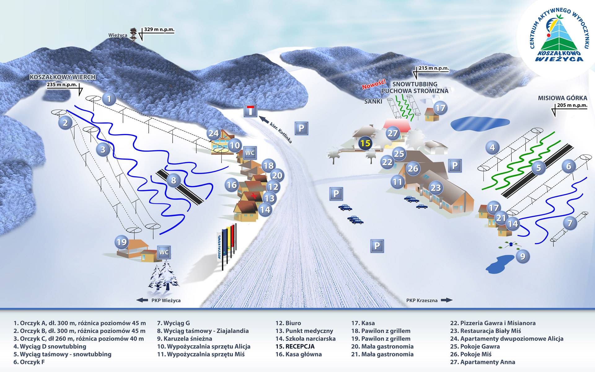 Pistenplan Wieżyca-Koszałkowo Saison 2024/2025