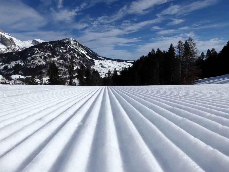 Die Pisten in Wildhaus werden täglich mit sehr viel Liebe zum Detail präpariert. Auch die extrem steile Warmtobelpiste ist perfekt hergerichtet.