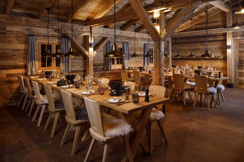 Das liebevoll gestaltete Chalet Max ist der ideale Ort für ein Schweizer Fondue. Hier kann man den Abend am offenen Kamin bei Schweizer Spezialitäten genießen.