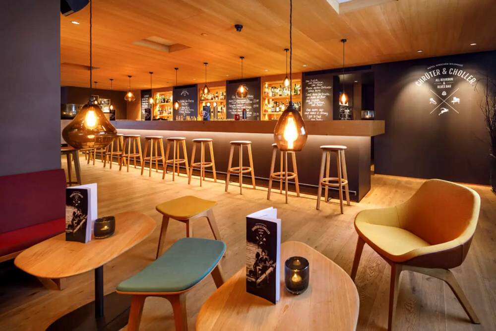 Den Abend lässt man an der Chrüter & Choller Bar ausklingen. «Chrüter & Choller» wurde 2017 in der Kategorie «Bar & Lounge» mit dem Preis «Best of Swiss Gastro» ausgezeichnet.