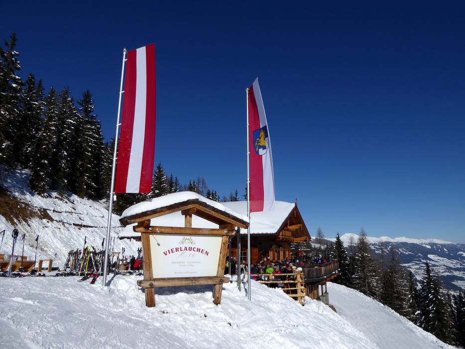 Die Vierlauchenhütte ist eine urige Skihütte mit Sonnenterrasse und sehr guten heimischen Spezialitäten. Der Ausblick auf das Pinzgau ist atemberaubend.