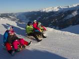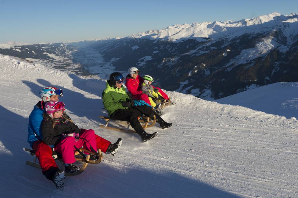Auf der längsten beleuchteten Rodelbahn der Welt. Vom Wildkogel geht es auf der 14 km langen Strecke mit 1.300 m Höhenunterschied nach Bramberg.