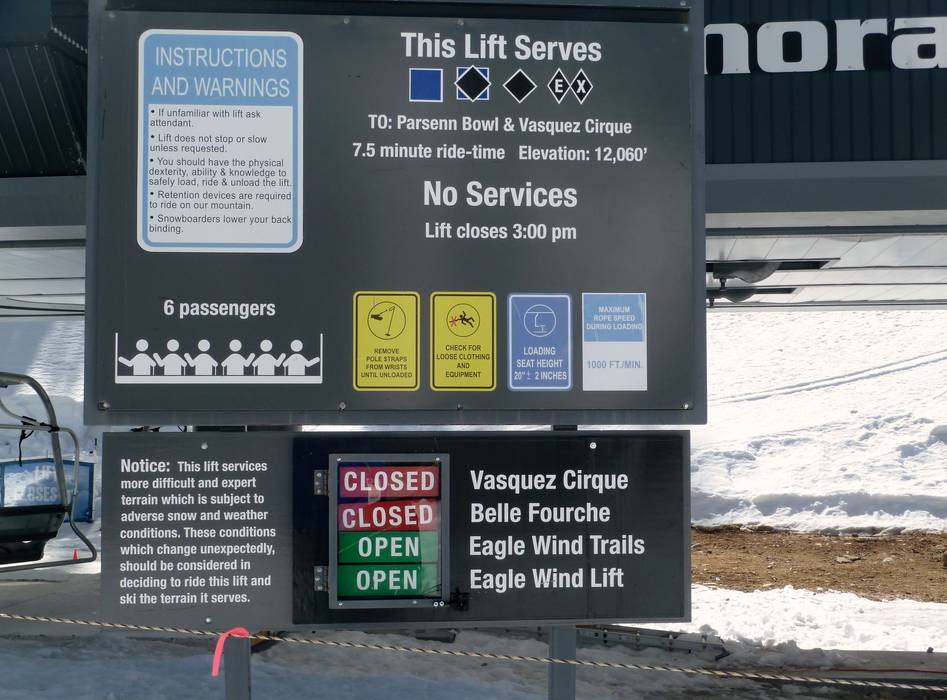 Orientierung (Pistenplan, Informationstafeln, Ausschilderung) und Sicherheit im Skigebiet Winter Park Resort