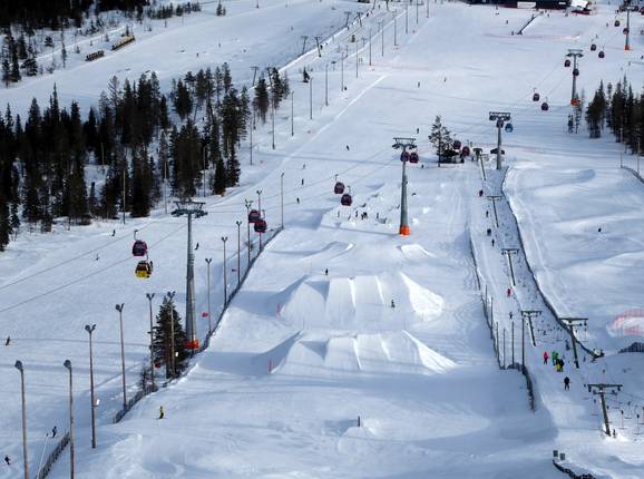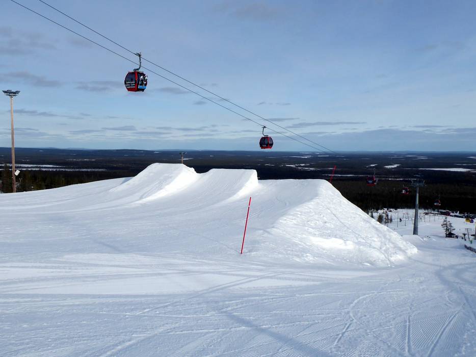 Im Skigebiet Ylläs warten mehrere Snowparks auf beiden Seiten des Gipfels Yllästunturi in den Talbereichen auf Freestyler und Snowboarder.